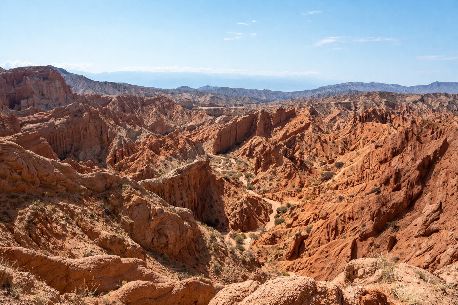 На южном берегу Иссык-Куля есть место, которое будто создано для автопутешествий и фотоостановок. Каньон Сказка расположен недалеко от села Тосор и известен своими красно-оранжевыми скальными формами, которые ветер превратил в причудливые стены, башни и “сказочных” животных.
