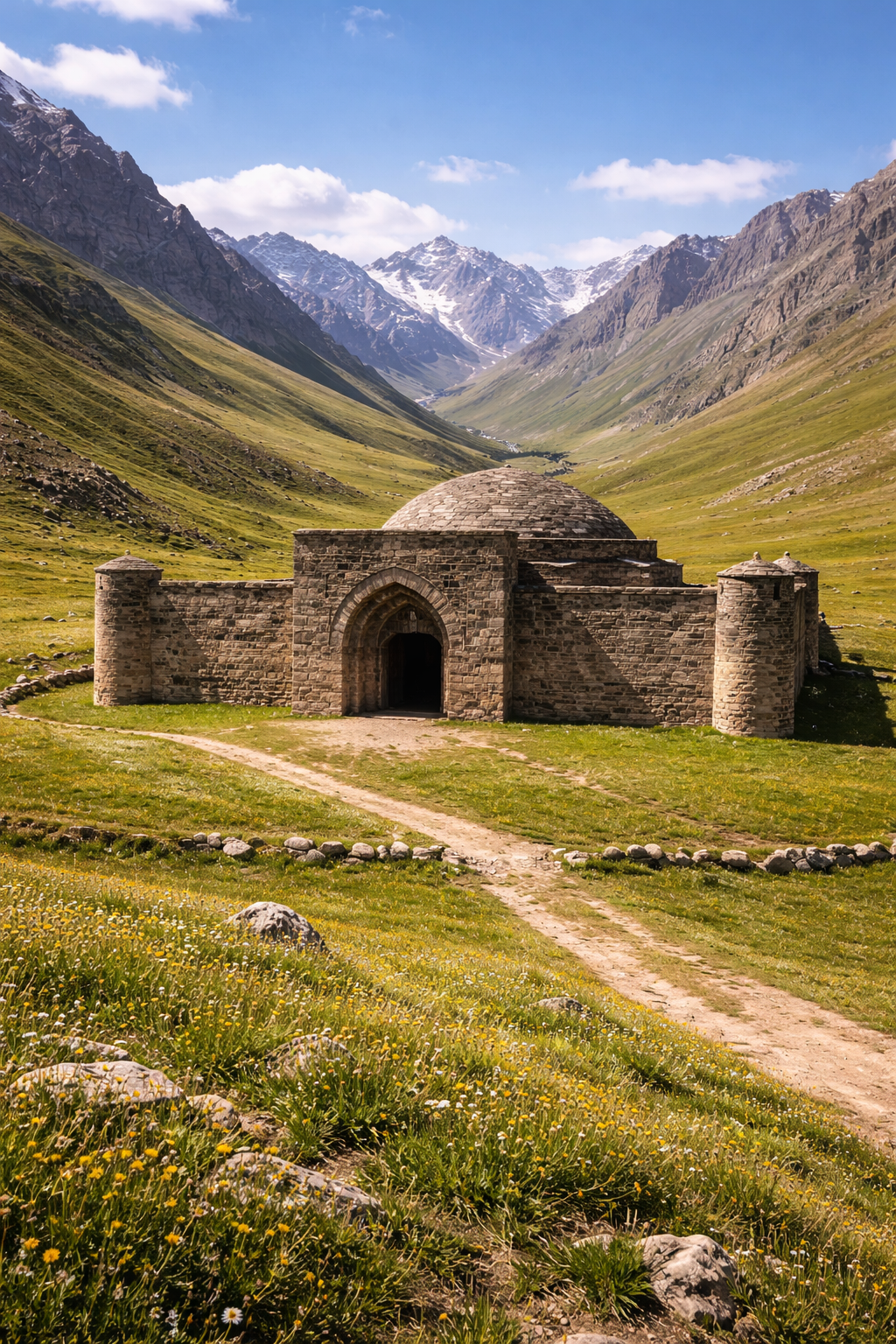 Таш-Рабат — один из самых атмосферных исторических маршрутов для тех, кто любит дорогу с ощущением древнего Шёлкового пути. Караван-сарай находится в Нарынской области, примерно в 90 км от Нарына, и сам его вид — каменное здание среди горных лугов — уже делает поездку запоминающейся.